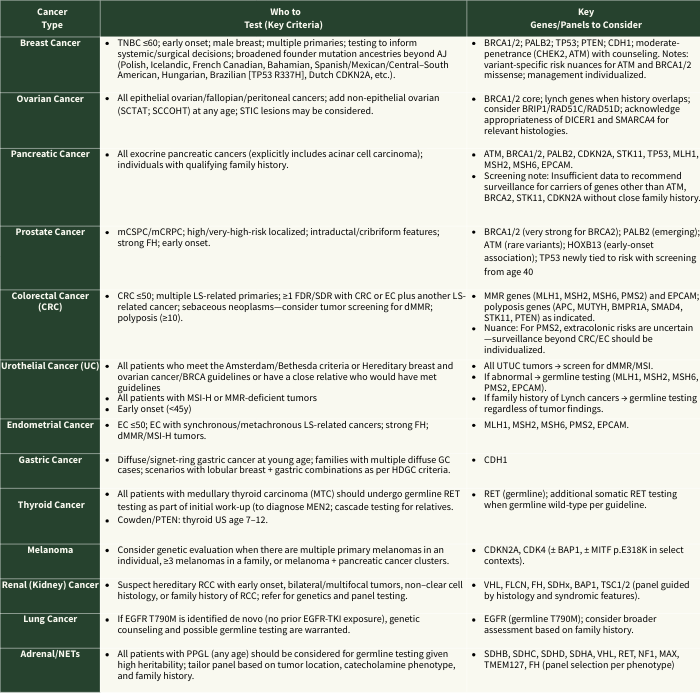 Germline results are therapeutic biomarkers — guiding PARP eligibility, platinum use, surgical planning, immunotherapy access, and cascade prevention. When testing is missed, treatment is lost.